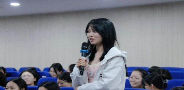 短剧制片人李璟箫分享了自己从阅读爱好者到专业创作者、再到投身短剧制作的成长历程。他特别鼓励现场学生:“不要害怕失败,要勇敢去闯”。
