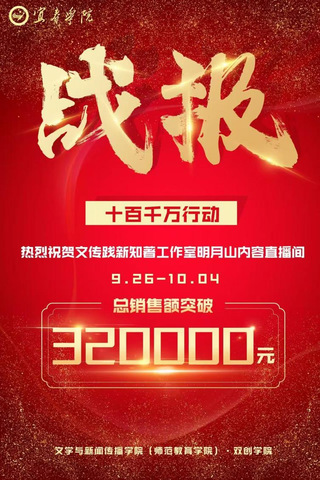 同时,明月山内容抖音直播项目也得到了文传学院和双创学院的大力支持,为直播提供场地、设备和人员管理等方面的多重保障。播音与主持艺术专业负责人邓娴老师负责学生直播团队的组建和全程指导,共开设两个直播间,每天直播时间从早8点到12点,晚7点到11点,自9月26日起连续开播8天,销售额屡创新高,到10月4日直播结束,销售额突破32万,单场最高销售额超过6万元。