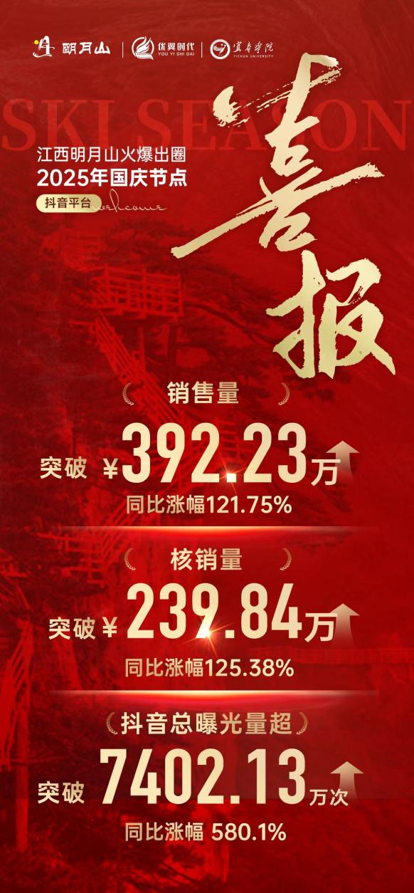 近日,明月山2025年国庆节点抖音营销数据正式发布,销售量、核销量和抖音总曝光量较2024年显著增长,其中销售量达392.23万元,较2024年增长121.75%,核销量突破239.84万元,较2024年增长125.38%,抖音总曝光量突破7402.13万次,同比涨幅580.1%。文学与新闻传播学院(师范教育学院)践新知著工作室明月山内容直播间直接参与了该项目,作为全新的实战型大学生实践直播团队,首次直接对接市场需求,迎接市场检验,取得不俗战绩,得到在地化文旅企业高度认可,2025年9月26日到2025年10月4日,文学与新闻传播学院(师范教育学院)践新知著工作室负责的明月山内容直播间销售额突破32万,单场直播最高销售额突破6万元!
