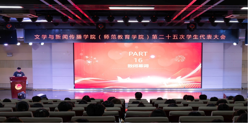 大会听取了李秋怡同学代表文学与新闻传播学院(师范教育学院)第二十四届学生会做的工作报告,审议并通过了第二十五次学生代表大会上提出的提案,会议以无记名投票方式选举产生了第二十五届学生委员会委员和学生会主席团成员,宣读了倡议书,呼吁全体同学凝心聚力,共同为校园建设与发展贡献力量。