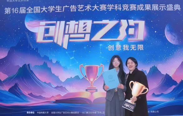 (尹瑛老师和22网媒学生黄伊琳同学参加大广赛颁奖典礼)