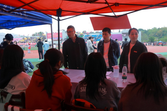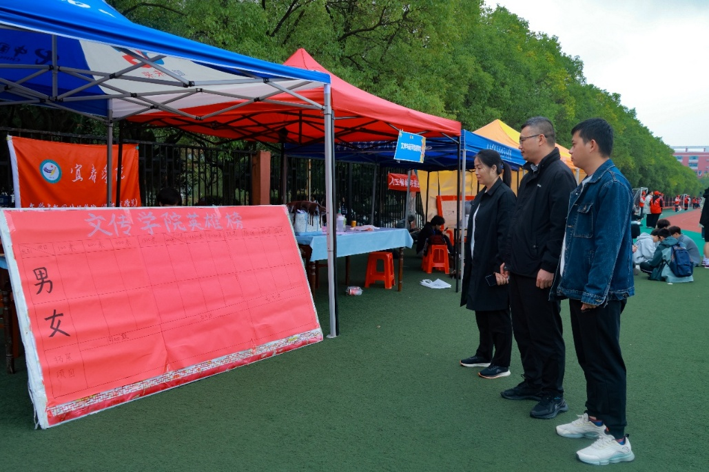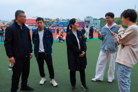 陈路扬逐一走访各比赛区域,与运动员亲切交流,详细了解大家的身体状况与赛前准备情况,对他们积极投入、奋勇拼搏的态度给予充分肯定。他特别叮嘱同学们,在比赛中要时刻注意安全,调整好心态,力争将日常训练成果充分发挥出来。陈路扬借此机会向全院学子发出倡议:作为文传学子,我们不仅要“读万卷书”,更要“行万里路”,在专注学业的同时,务必注重日常体育锻炼。他希望全体同学能以参赛运动员为榜样,积极投身体育运动,增强体魄,磨砺意志,在本次校运会上力争实现新的突破,展现文传学子的青春风采。