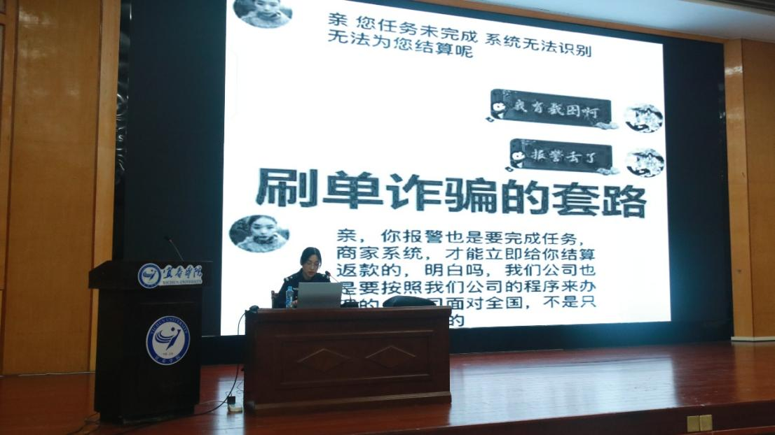 为切实提升新生防范电信网络诈骗的意识和能力,守护学生财产安全,11月6日晚,文学与新闻传播学院(师范教育学院)在校本部主教楼三楼报告厅举办反诈专题讲座。本次活动特邀袁州区公安分局凤凰派出所民警主讲,文学与新闻传播学院(师范教育学院)2025级全体学生参加。