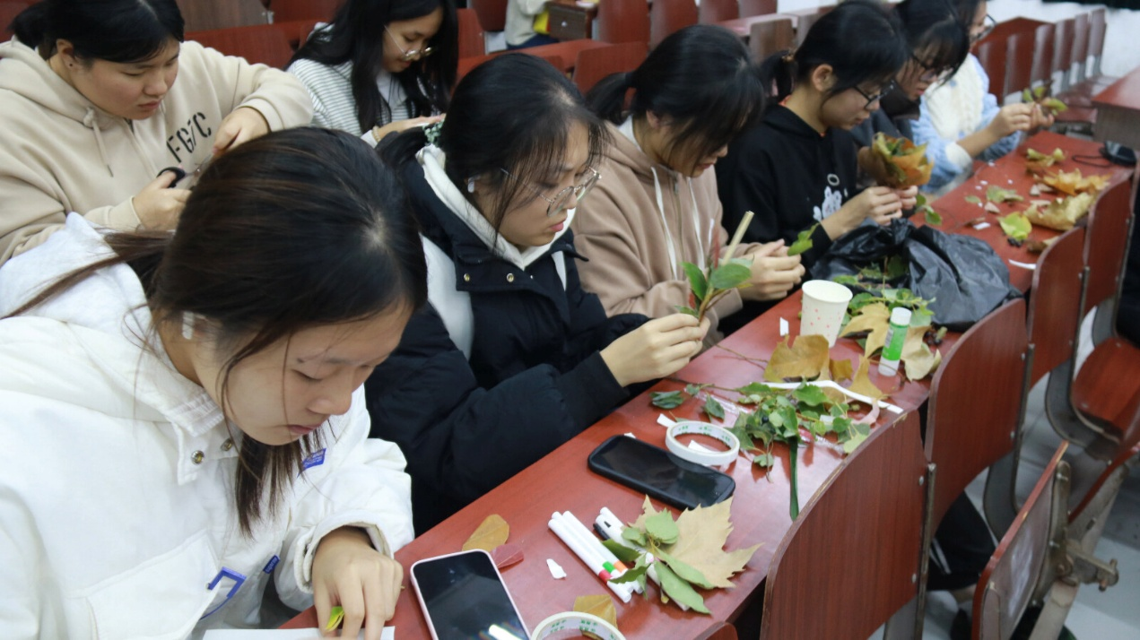 寒意渐起,落叶纷飞。为丰富校园文化生活,充分发挥学生的想象力和动手能力,11月21日晚,文学与新闻传播学院(师范教育学院)于人文大N307组织开展以“落叶生花”为主题的手工创作活动,吸引众多同学参与。