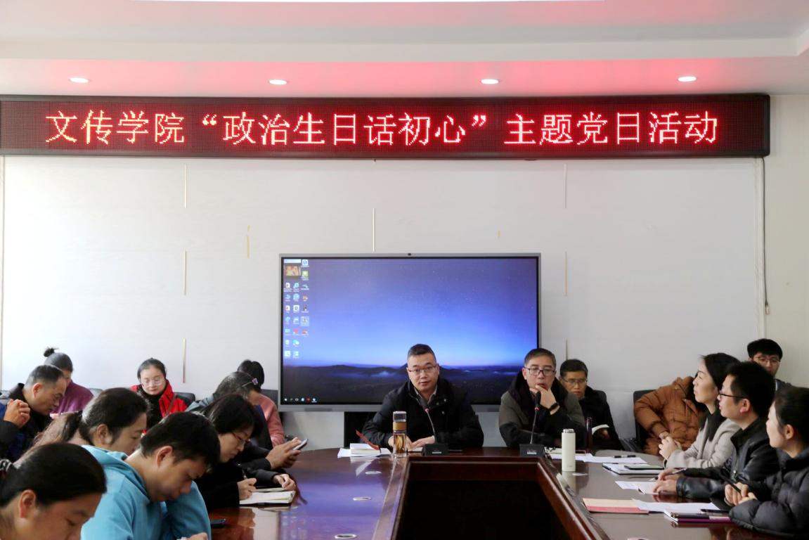为进一步激发党员积极性和创造性,强化党员的身份意识和责任意识,唤醒党员入党初心,11月19日下午,文传学院党委和中文、新闻党支部举办了“政治生日话初心,踔厉奋发谱新篇”主题党日活动。院党委书记陈路扬,党委委员、院长高建青,党委委员、副院长魏军,党委副书记刘漪舟,党委委员、副院长尹瑛以普通党员身份和全体党员教师参加了活动。
