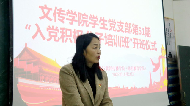 为提升入党积极分子的政治觉悟和理论水平,帮助他们加深对党的认识和了解,进一步端正入党动机,自觉按党员的标准严格要求自己,为早日加入党组织打好思想和理论基础。11月24日晚,文学与新闻传播学院(师范教育学院)在人文楼N307举行第51期入党积极分子培训班开班仪式。院党委副书记刘漪舟出席,并作开班讲话;党委委员、党建与思政工作办公室主任罗智伟作专题培训,全体入党积极分子参加。罗智伟主持开班仪式。仪式在雄壮的国歌声中开幕。