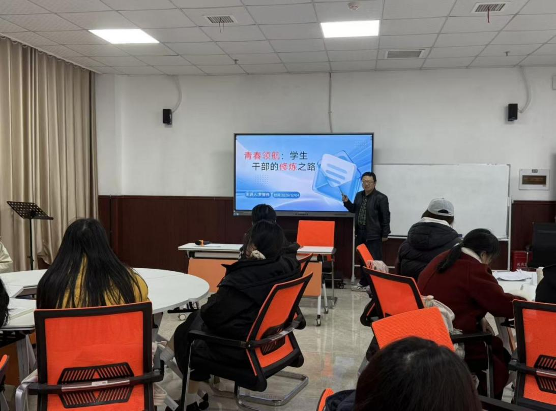 为提升学生干部综合素养,强化责任担当意识,12月4 号,特邀党委委员、党建与思政工作办公室主任罗智伟老师开展以“青春领航:学生干部的修炼之路”为主题的大骨班专题讲座,各班学生干部代表齐聚一堂,共赴这场成长赋能之约。
