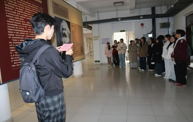 学习环节后,全体学员在播音与主持艺术专业李姝彤、高一同学的讲解下,集体参观了人文楼红色长廊。通过历史记述与图片展示,学员们重温党的百年奋斗历程,感悟红色精神的时代内涵,进一步坚定初心使命,汲取前进力量。