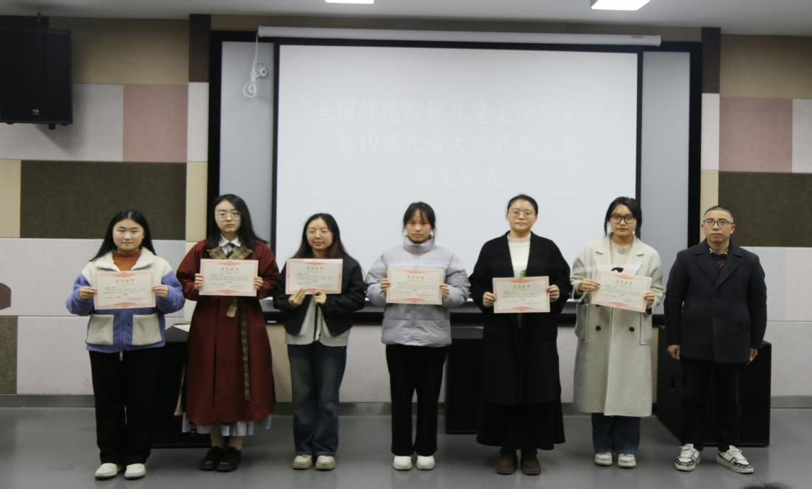 12月12日下午,文学与新闻传播学院(师范教育学院)在二教东二406举办全国师范院校儿童文学研究会第十九届儿童文学作品大赛颁奖仪式。文传学院院长高建青、副院长尹瑛和中文系主任谢志勇出席仪式,与获奖学生共同见证荣誉时刻。