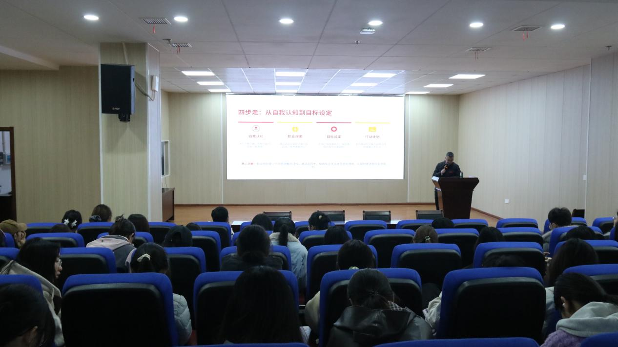 关于职业规划,他系统讲解了从自我认知到目标设定的“四步走”方法:深入了解自我、积极探索职业、设定短中长期目标、制定行动计划。同时,他强调沟通表达、团队协作、抗压能力等通用素养是未来职场的通行证。