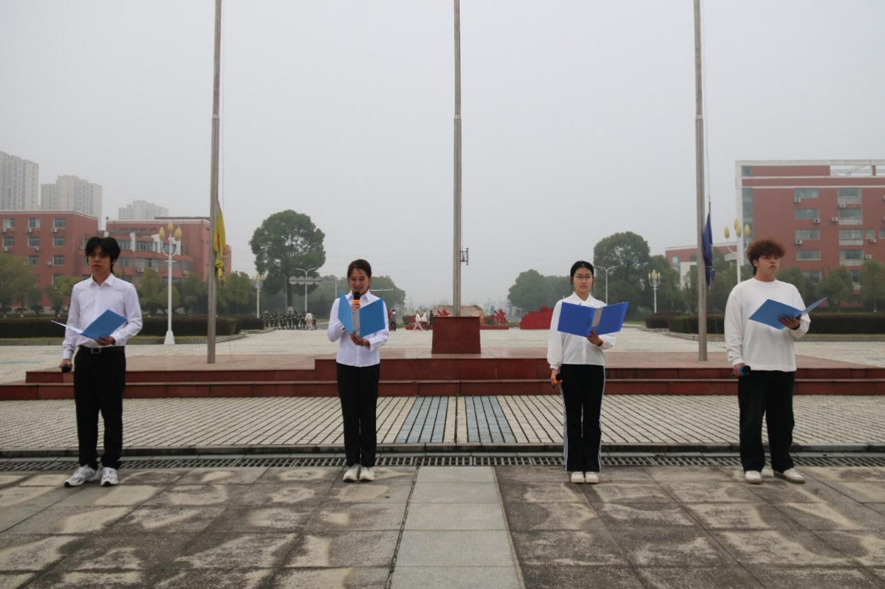 升旗仪式结束后,2025级播音与主持艺术班4名学生代表朗诵《以青春之我,绘祖国之盛》,回答“强国有我”的时代之问,号召新时代青年以青春为笔,以实践为墨,绽放青春光芒。