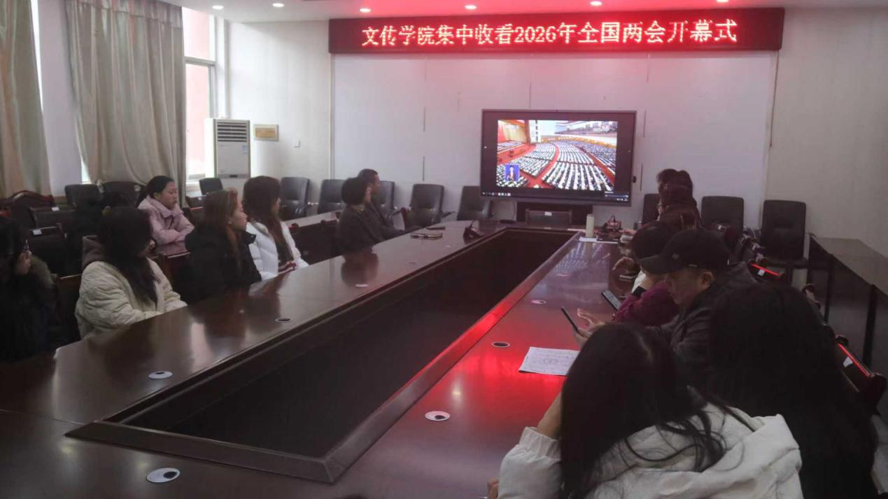 为深入学习贯彻全国“两会”精神,厚植家国情怀与使命担当,切实把思想和行动统一到中央决策部署上来,2026年3月5日上午,文学与新闻传播学院(师范教育学院)组织师生代表于人文楼S308院会议室集中收看十四届全国人大四次会议开幕会直播。