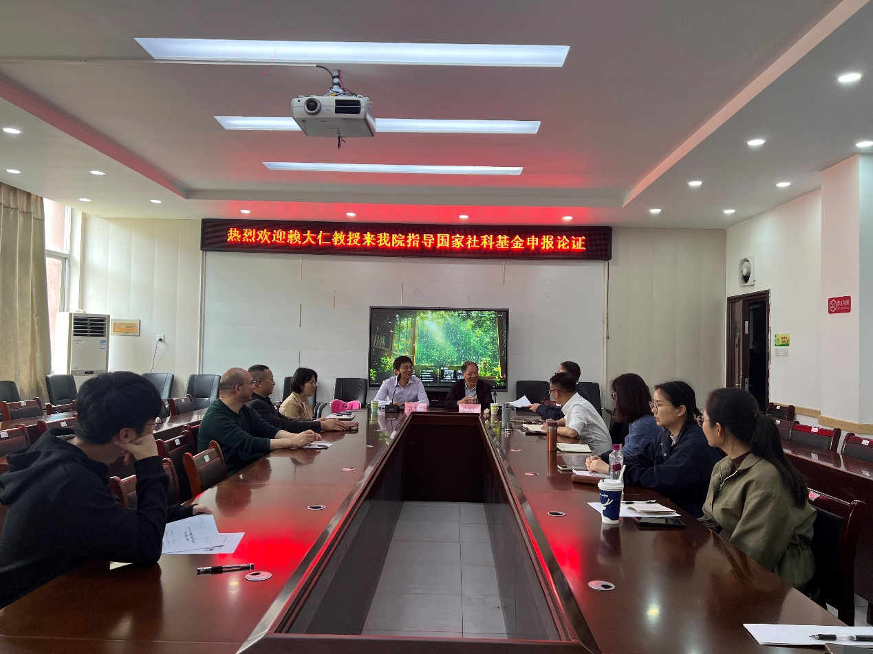 为进一步提升学院教师国家社科基金项目申报质量,强化有组织科研实效,4月8日,我院邀请江西师范大学赖大仁教授莅临指导教师国家社科基金项目申报论证。文学与新闻传播学院(师范教育学院)院长高建青、教务处处长刘旭东、副院长魏军、尹瑛,以及我院拟申报2026年国家社科基金项目的教师参加了此次会议。科学研究处副处长袁杰辉教授主持会议。